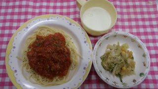 今日はミートソーススパゲティでした🍝子どもたちは午前中からメニューを知るとご機嫌です(*^-^*)♫ ラッシーもあるよ~と言うとニッコニコ笑顔でした(^o^) お食事の時間にお邪魔してきました(⋈◍>◡<◍)。✧♡
