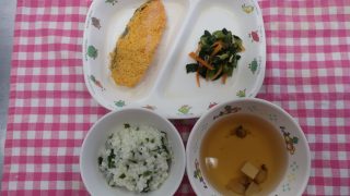 今日のお昼ご飯は新鮮な脂ののった鮭を使って、もみじ焼きでした~🐟💕すりおろした人参とマヨドレを混ぜて、鮭にのせて焼いて作ります(^-^)!!とても人気でおかわりもたくさんの子がしてくれました~💕わかめご飯も「これ好き~💕 […]
