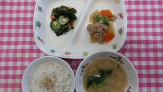 今日のメニューは、豚肉にキャベツ、玉ねぎ、人参を合わせた具沢山の豚丼でした✨甘辛い味付けに白ごまを入れて栄養たっぷりの丼ぶりでした~☺️ みんな、とっても良く食べてくれました~😋 副菜は、切り干し大根の中華和えです👍さっ […]