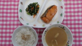 今日はお散歩帰りのありんこさんが調理室に遊びに来てくれました~(*^-^*)💕消防署のお話をたくさんしてくれましたよ~😊!! 今日はお魚の日でした🐟!!新鮮な脂ののった鮭を照り焼きタレに漬け込んで焼いて『鮭の照り焼き』に […]