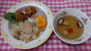 みんな大好き和食メニューで秋にピッタリの「白身魚のきのこあんかけ」でした♪副菜には栄養満点!!「ほうれん草のごま和え」が付きました(^o^) そして、おひつに入れられたホカホカの白いご飯を盛り付ける際にお友だちが「わぁ~ […]