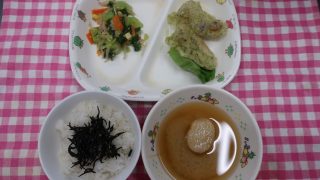今日はちくわの磯辺揚げでした✨ ちくわの磯辺揚げは、魚が苦手な子も食べやすくとっても人気があります😋 『サクサクのちくわが美味しい~✨』『これ揚げたて~?」っと聞いてくれる子もいました!冷めてもサクッと美味しいちくわの磯 […]