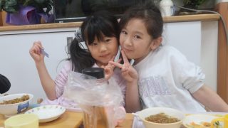 週明け疲れが見える月曜日ですが、みんな元気にモリモリ食べてくれました✨ お茶碗やお椀を持って食べられるようになってきました(*^-^*)