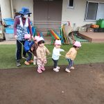 昨日サンタさんからの手紙をみつばちさんが届けてくれて読むと「合奏頑張ったらサンタさん来るかな?」とドキドキ、ワクワクのかぶとさん!今朝も園内にクリスマスソングが流れていて落ち着きのない様子です!みつばちさん鍵盤ハーモニカ、とんぼさんの合奏を見せてもらいました♪かぶとさんも「炎」を演奏しました!少し緊張した様子です!最後に3~5歳児で「あわてんぼうのサンタクロース」を歌うとサンタさんが登場🎅保育室に入ってくるとサンタさんの側に一目散に向かっていました!「園長先生だ~」と言っている子もいましたがサンタさんがプレゼントを持って来てくれました(*^^*)早く開けたいかぶとさんですがサンタさんが演奏を聞かせてほしいとの事でお礼にもう一度「炎」を演奏しました!片付けた後、赤鼻のトナカイの曲に合わせてプレゼント(爆弾)ゲームをしました!曲終了時に持っていた子が代表で開けました♪プレゼントは、ジスターでした!仲良く使おうね!との事で早速遊びました!