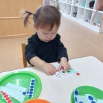 今日は園庭で過ごしました。涼しくて過ごしやすく、子どもたちもいつもよりも活発に体を動かす姿が見られました。フラフープを持って歩いたりくぐったりする子もいました。あんよができる子は色々なところに歩いて行ったりハイハイの子はつかまり立ちしたりお座りしながら砂場のおもちゃを手に取って遊んでいました。お外に出ると子どもたちは大人が気が付かないようなことに気付き、指差しをしたりハイハイやあんよで行ってみて探検をしています。今度はどんな発見を教えてくれるかなぁ☆