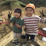 2階ホールですべり台やマットの山、くねくねロープ、トンネルのサーキットをすると、身体をいっぱい動かして遊ぶありんこさん。すべり台では滑り終えると手を伸ばし次に滑ってくるお友だちに「かんかんかん」と踏切を作って楽しむ姿がありました。マットの山では慣れてくると立ったまま降り、降りる時のスピードに大喜びしていました。くねくねロープでは「おっとっと~」とバランスを取りながら上手に渡っていましたよ♪マットのトンネルでは「いくよ~」と通り抜けて遊んでいました。最後にマットで狭い家を作ると「わぁ~お家だ☆」と喜んで入るありんこさん。「トントントン」「どうぞ~」とやり取りを楽しんでいましたよ。