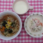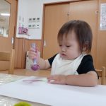 幼児クラスの給食では、自分たちのお皿を取りに来て配膳しています。汁ものは十分に加熱し温度での提供なので、安全の為盛り付け量はやや少なめにしていますが(その分、おかわり対応を行っています)安全に運べるようにお椀の持ち方を伝えたり、周りを見て動くなどの声かけをしながら行っています。