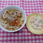 今日の主菜・主食はけんちんうどんです!根菜たっぷり、具沢山でとっても味わい深い美味しいうどんです♡