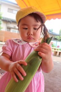 とうもろこしの皮むきを子どもたちにお願いしました~✨