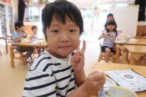 おやつは栗ようかんでした☆彡 秋になり栗を使ったメニューを入れてみました!!子どもたちは好きかな~??