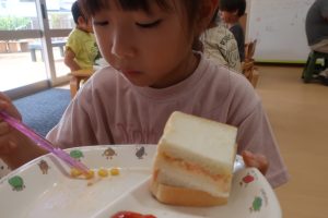またジャムバージョンのサンドウィッチもあり、みんな自分たちでジャムを塗りながらサンドして楽しんでいます🎵