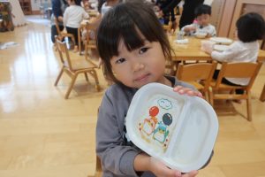 おかず皿もちゃんと持って食べてくれていました👌みつばちさん、かっこいい~👍