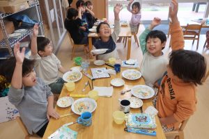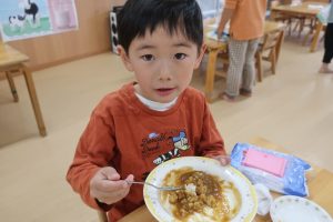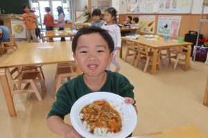 2025年11月12日 / 最終更新日 : 2025年11月12日 調理室 食育ニュース 11月12日(水)星形のラッキー人参✨当たった~~~(^○^) 今日は、皆大好き!!チキンカレーでした🎵やわらかく煮込んだ鶏肉と野菜が入ったチキンカレーはみんなに人気ですよ~😋‼️‼️そして~~今日『星形のラッキー人参』が当たった✨おともだちで~す✨✨ おかわり食べる人~~??「はーーい☺️]とみんな元気に手を挙げてくれています😍 FacebooktwitterHatenaPocket