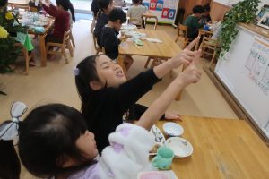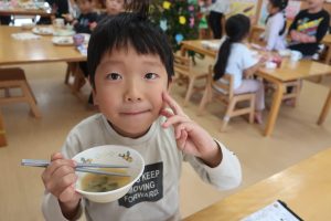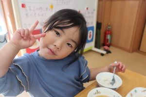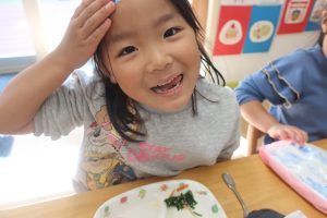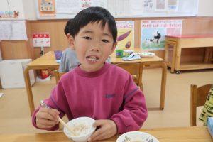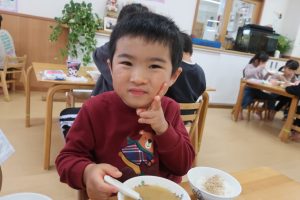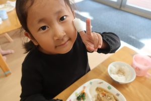 みんな大好き和食メニューで秋にピッタリの「白身魚のきのこあんかけ」でした♪副菜には栄養満点!!「ほうれん草のごま和え」が付きました(^o^) そして、おひつに入れられたホカホカの白いご飯を盛り付ける際にお友だちが「わぁ~~(●^o^●)♡ おいしそう~!!」と言っていました🎵とても微笑ましく温かい気持ちになりました(*^-^*)💕
