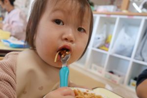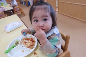今日はミートソーススパゲティでした🍝子どもたちは午前中からメニューを知るとご機嫌です(*^-^*)♫ ラッシーもあるよ~と言うとニッコニコ笑顔でした(^o^) お食事の時間にお邪魔してきました(⋈◍>◡<◍)。✧♡