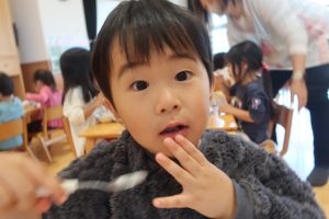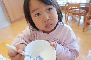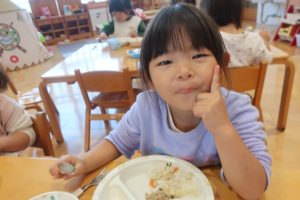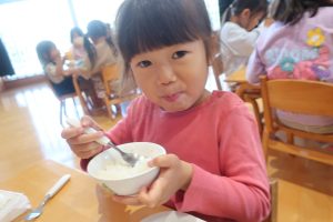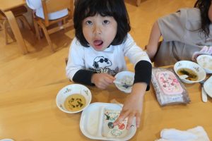 副菜の「さつまいもサラダ」お芋ほりでみんなが収穫したお芋です(*^-^*) 日にちが経ちどんどん甘くなってきましたよ~♪
