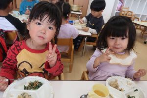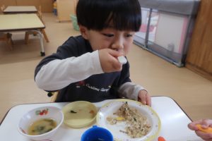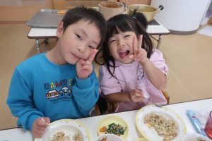 今日は、油揚げにしっかりとおかかの風味がして、香ばしくて美味し~い😋『油揚げのおかかチャーハン』でした✨一口食べて「このご飯美味しいね~」と大好評‼️‼️副菜には、ビタミンたっぷりの『ほうれんそうのツナ和え』を添えて栄養満点👌の給食でした~✨