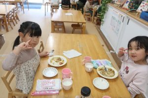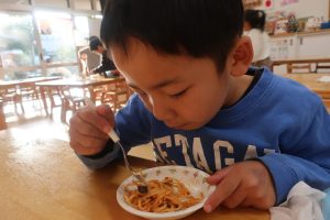 先日、とんぼ組のお友だちが「茄子とチーズを使ってパスタ作りたい‼️」とメニューを考えてくれましてクッキングをしました(^^)/ナス🍆はかぶとさんが育ててくれたナスを使いました✨「パスタおいし~い!!」と、とても好評だったのでみんなのおやつに提供することにしました(^^)/具材には、ツナ、なす、チーズを使いトマトケチャップで食べやすい味に作っています🎵