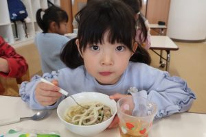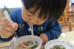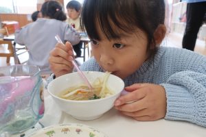 今日のメニューは、鶏肉のうま味がつまった「鶏塩うどん」でした😋鶏塩うどんは、たんぱく質がしっかりとれて、あっさりした味付けなので消化も良く、寒い日には体が温まる一品で~す💕💕