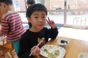 『サクサクのちくわが美味しい~✨』『これ揚げたて~?」っと聞いてくれる子もいました!冷めてもサクッと美味しいちくわの磯辺揚げは大好評で、おかわりもすぐに完食でした~(*^-^*)