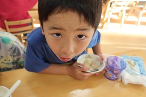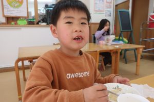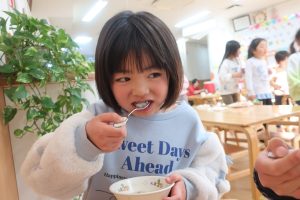 亀井野保育園では、今年は七草がゆをおやつに提供しました(*^^*)