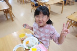給食室からはささやかながらお祝いの気持ちを込めて、給食にもち米しゅうまいを作りました💕