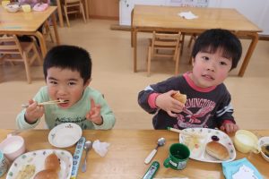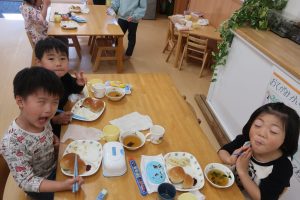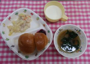 今日の給食はかぶとさんのリクエストでグラタンとパンでした~🥖💕今月のグラタンはかぶや白菜の入った冬野菜グラタンです⛄✨焼きたての温かいグラタンをみんなで頂きました~😋💕パンは十二穀ロールでした🥖✨みんなにとても人気でしたよ~(⋈◍>◡<◍)。✧♡