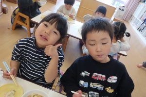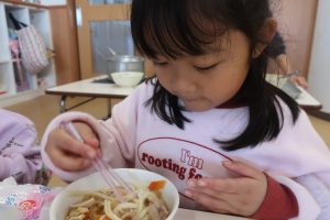 2026年1月24日 / 最終更新日 : 2026年1月24日 調理室 食育ニュース 1月24日(土)寒い日には温かいうどんが一番😋!! 今日は、豚肉と油揚げの温かいうどんでした~☺️今週はいちだんと寒くなり、ほっと心もからだも温まるメニューとなりました✨ みんなお外でいっぱい遊んで来たので、お腹もすいていたようで、うどんを嬉しそうに食べる姿が見られました👍 みんなたくさんおかわりをしてくれました~✨☺️✨ FacebooktwitterHatenaPocket