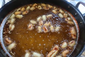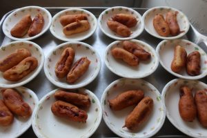 保育園では串に刺さずに、ウインナーを小麦粉と豆乳を合わせた液を付け揚げています(*^-^*)