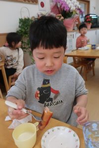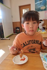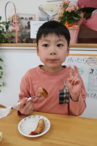 3月17日(火)今日のおやつはアメリカンドッグでした💖