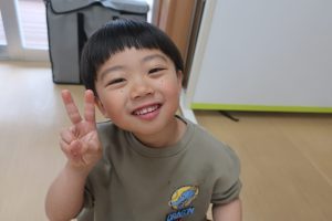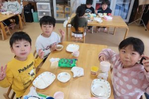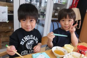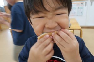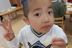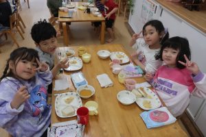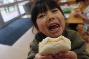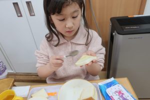 パンにジャム塗る姿はさすがかぶとさん✨スプーンを使ってとっても上手に塗っていました~💖
