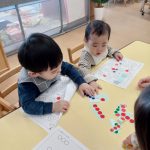 2020年11月27日 / 最終更新日 : 2020年11月27日 ありんこ組 1歳児ありんこぐみ日誌 お部屋でコーナー遊びをしました♪ 今日は保育室でコーナー遊び(お絵描き、ひも通し、アイクリップ、トミカ)をしました☆お絵描きコーナーでは机に新聞紙をはり、マーカーペンでお絵描きを誘うと、椅子に座って夢中になってぐるぐると絵を描いていました。ひも通しでは、 […]