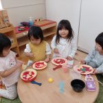 2022年3月10日 / 最終更新日 : 2022年3月10日 みつばち組 3歳児みつばちぐみ日誌 お砂場側園庭で遊んだよ(^^♪ 今日は、お砂場側園庭で遊びました!!保育士のお話しが終わると、さっそくお砂場セットを広げ、色んなお店屋さんの準備に取り掛かっていましたよ!!何屋さんがあるの?と質問すると、「カレー屋さん、クッキー屋さん、パンケーキ屋さん […]