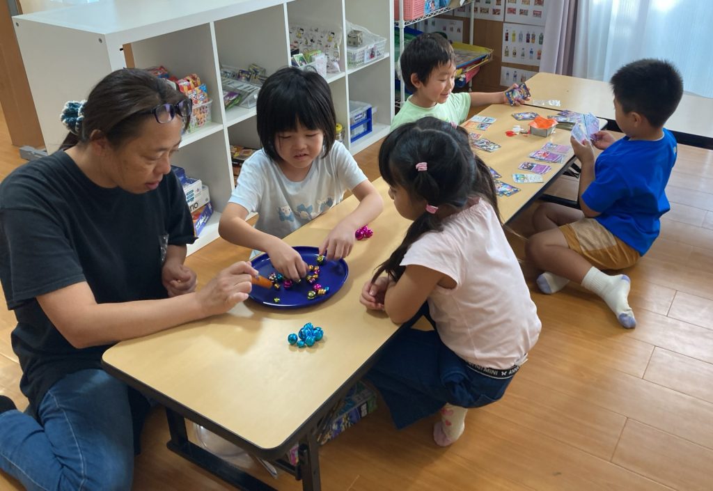 お部屋では、ボードゲーム・カードゲーム・レゴブロック・ミニチュア玩具・お絵描き・ピアノ・読書などで遊びました。