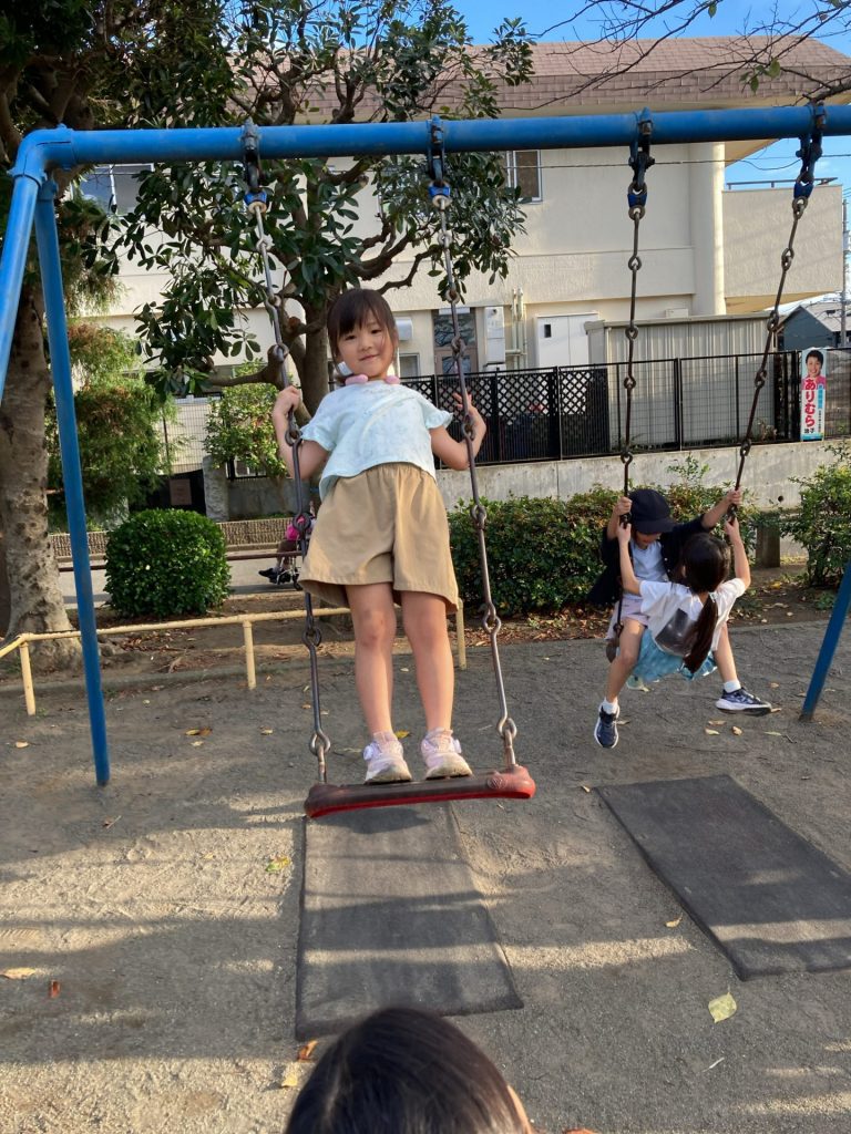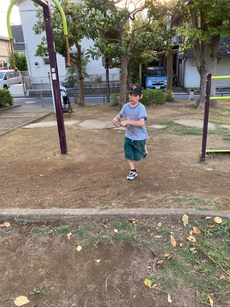夕方は犬久保公園やテラス、お部屋の中で遊びました。お部屋の中ではハロウィンバック制作やコマ、レゴ、読書、プラレール等をして遊びました。