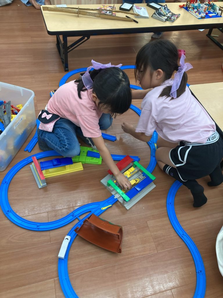 残暑も落ち着き今日は過ごしやすい一日でしたね!明日からは10月です。運動会に向けて本格的な練習も始まります!今年はどんなダンスや競技をするのか楽しみですね♡今日は1・2年生が5時間授業で14:30頃の登所、3年生以上が6時間授業で15:30頃の登所でした。3年生は市内巡りがありいつもより少し帰りが遅かったですが、みんな元気に帰ってきました。色々な所を回り楽しかったみたいです。夕方は久しぶりに園庭でバスケットボールや三輪車、ブランコ、鬼ごっこ、縄跳び、フラフープ等をして遊びました。お部屋ではコマや人形遊び、段ボール工作、プラレール、読書、ビー玉コースター等をして遊びました。