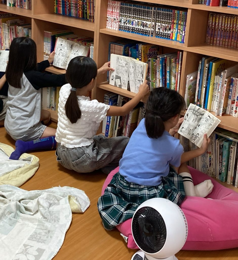 おやつ後はお部屋で遊びました。読書・カードゲーム・工作・お手玉・コマ回し・折り紙・クラブまつりの準備等をして過ごしました。