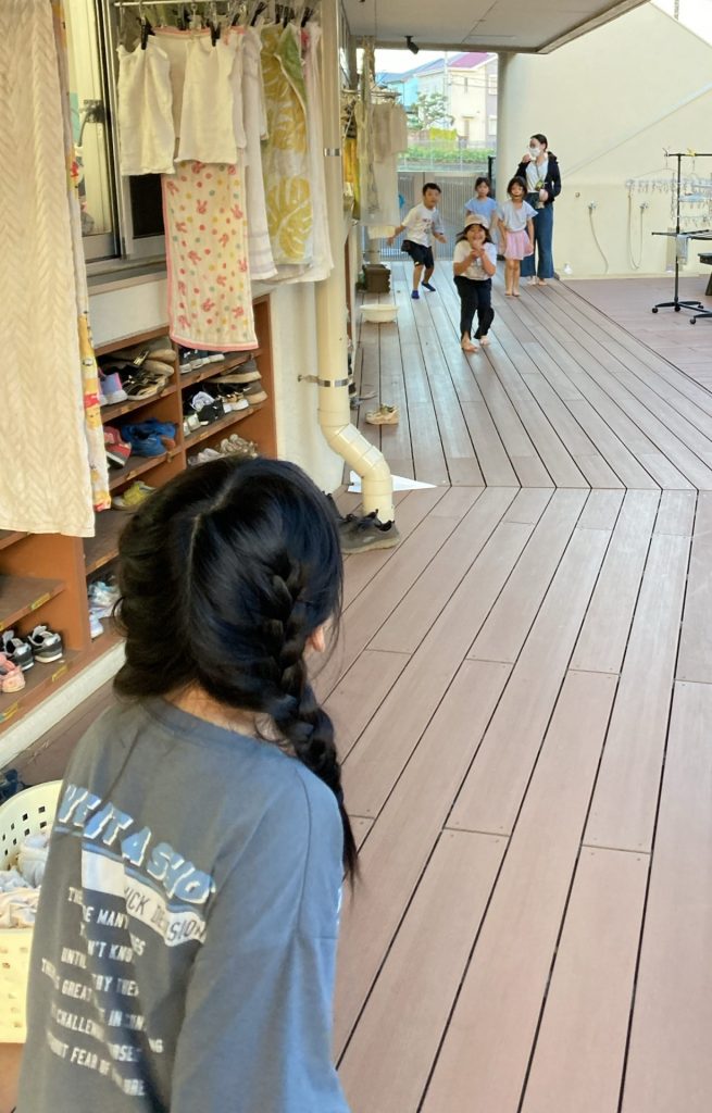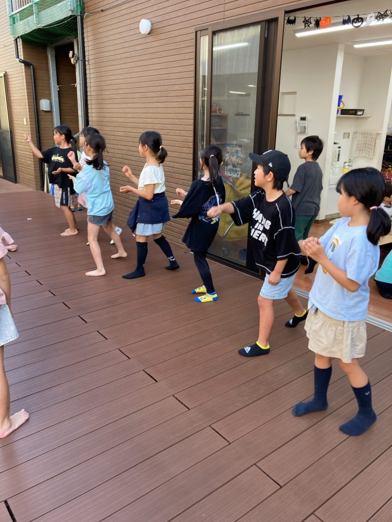 今日は一日いいお天気でしたね!クラブに帰ってきてからテラスで運動会のダンスを踊っていました♪もう振付を全部覚えたようで一曲通して掛け声もばっちりでした!