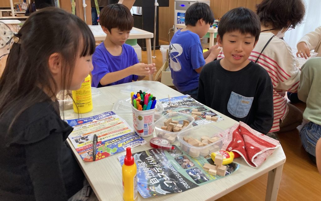 景品作りは木工ブロック工作・折り紙・プラ板製作をしています。