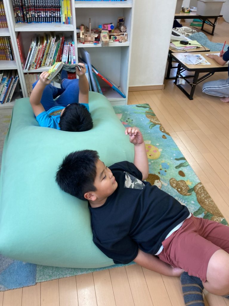 今日は、肌寒い日でしたね。1年生は、4時間授業、2年生以上は、5時間授業で帰ってきました。みなさん宿題を終わらせお部屋で遊びました。今日のおやつは、「フルーツポンチ」でした!カルピス、三ツ矢サイダー、リンゴジュースのどれか1つを選んで食べました🍹おやつを食べた後は、犬久保公園に行きました。犬久保公園では、サッカー、野球、バドミントン、鬼ごっこ、ブランコをしたり、園庭では三輪車、バスケ、ブランコ、フラフープをしたりして遊びました。テラスでは、風船、だるまさんが転んだをしました♪お部屋では、ピアノ、人生ゲーム、LEGO、ハロウィンバッグ作り、クレヨンアート、ピアノ、読書等をして過ごしました☆