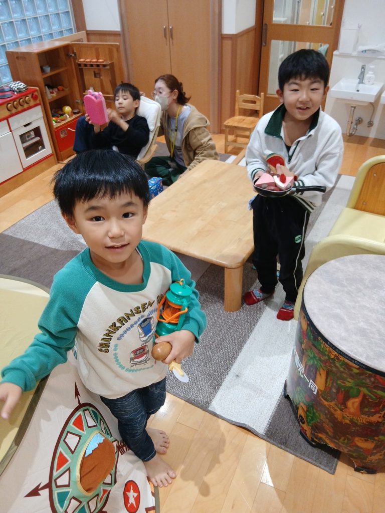 今日は冷たい雨の降る一日で最高気温は12℃程と12月並みの気温でした。登所時には「傘ささないで帰って来た!」と自慢?している子もおり、急に気温が下がった事もあり体調を崩さないように身体を暖かくして栄養のあるものを食べ、ゆっくり休息を取る事を心掛けていきましょう!