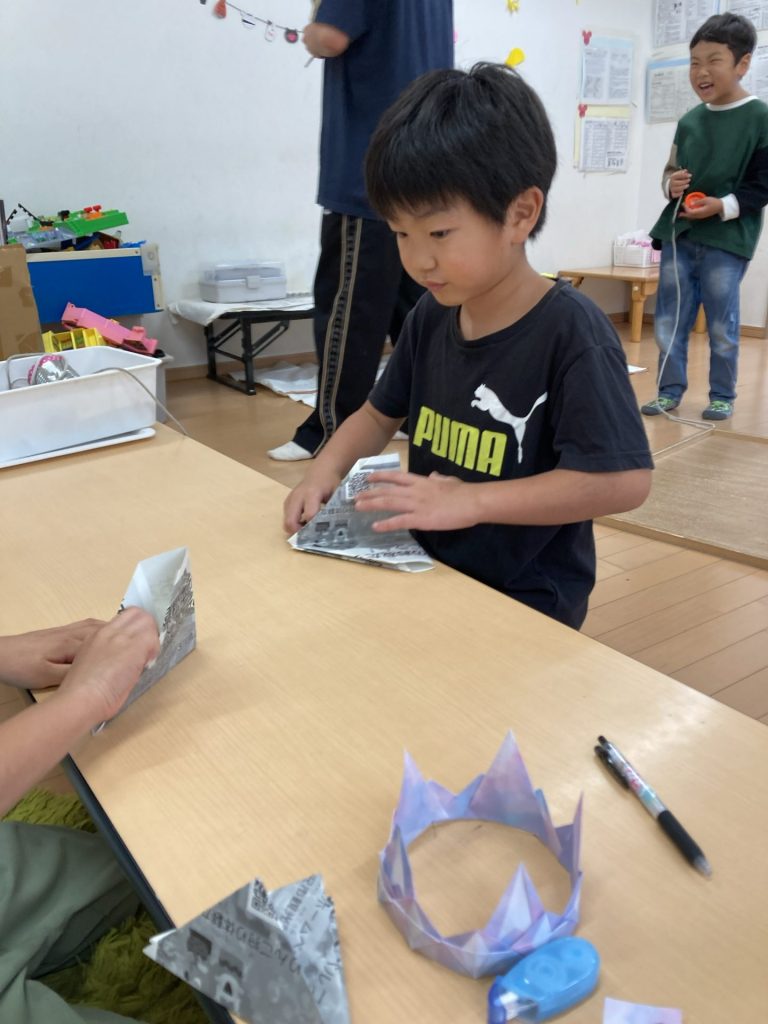 夕方は公園で野球やサッカー、バドミントン、鬼ごっこ、ブランコ、鉄棒などをして遊びました!園庭ではバスケや三輪車をして遊びました♪お部屋では紙鉄砲勝負や折り紙、画用紙工作、読書をして過ごしました!