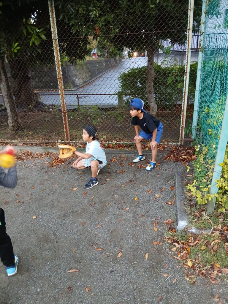 夕方は身体を動かしたい子が多く、雨も止んでいた為犬久保公園へ行き野球やブランコ、鬼ごっこ等をして遊びましたが、途中で雨が降って来てしまったため急いでお部屋に帰りました。