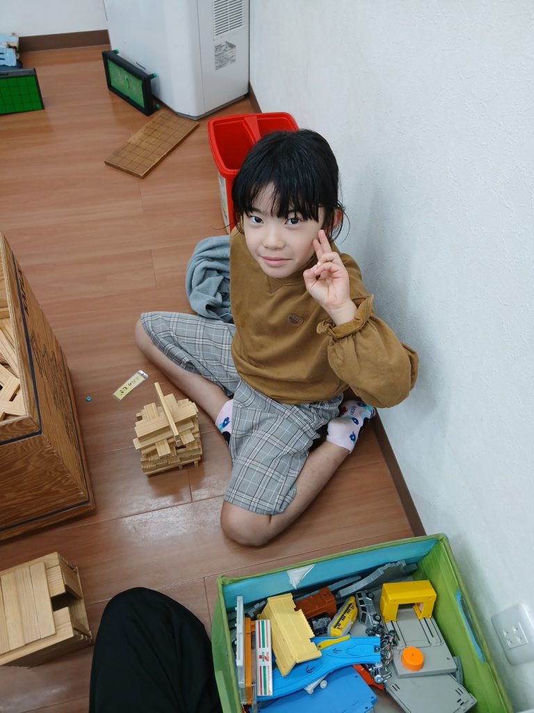 今日は登所後には宿題を済ませてから、レゴをしたり工作をしたりとお部屋の中で過ごしました。おやつ後には少し雨が止んでいた為、2年生がテラスの水はけをしたあとにテラスでフリスビードッジをして遊んでいました。