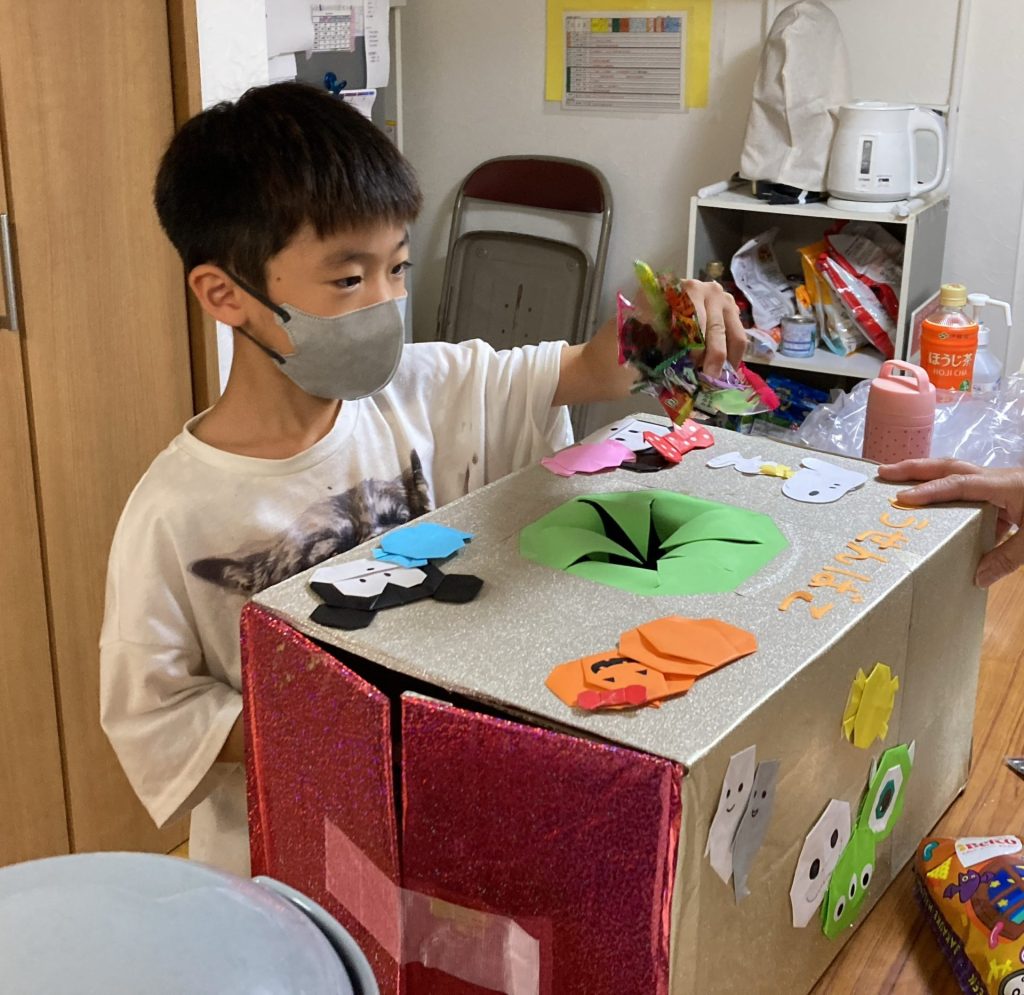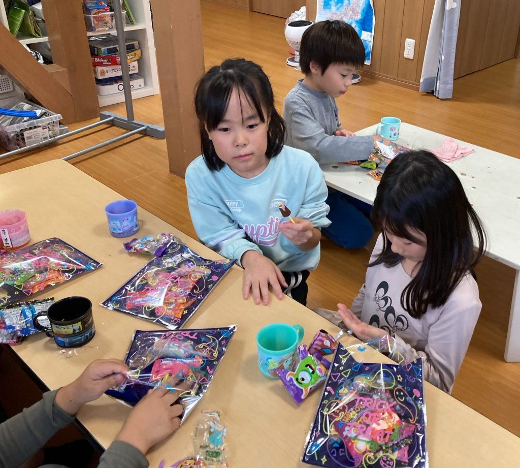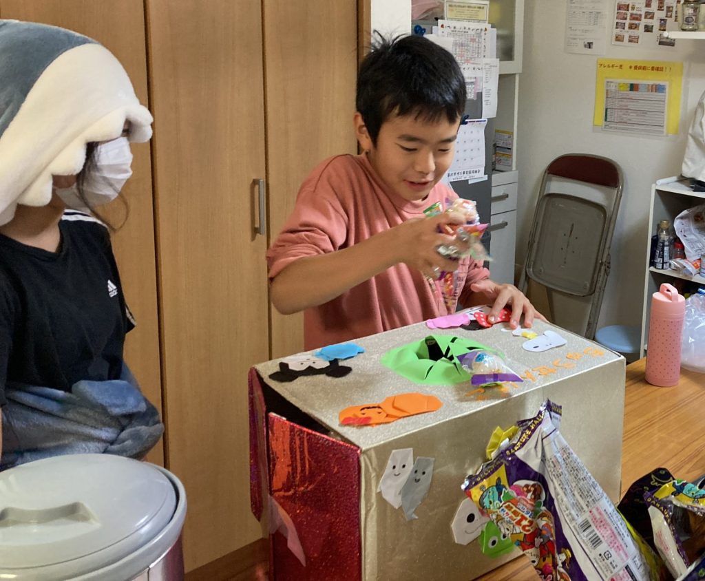 2025年10月31日 / 最終更新日 : 2025年10月31日 社会福祉法人葵福祉会 葵KID’ Sクラブ 10月31日(金)今日のあおいKID’Sクラブ 今日は「ハロウィン」。クラブでは、仮装をしたり、お菓子のつかみ取りをしました。 サメやマリオ、ジェダイ、コウモリ等々に仮装したお友達もいました。 ドキドキ「お菓子のつかみ取り」マシュマロやチョコ、グミ等々 いつもより、多いお菓子を頂きました。 お部屋では、ボードゲーム、レゴブロック、折り紙、カードゲーム、読書等で友達と遊びました。 明日は六会小学校が運動会。無事開催できますように・・・ FacebooktwitterHatenaPocket