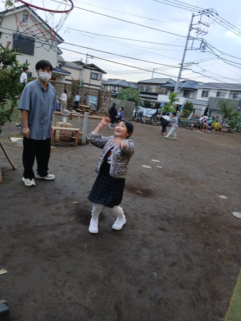 おやつはパックンチョとばかうけ、学級閉鎖でハロウィンのつかみ取りができなかった人はチャレンジしました。人数が少なくあっといまにおやつの時間が終わり、今日は「絶対公園がいい!」と希望があったのでパパっと支度をして犬久保公園にいきました。ブランコや鉄棒、野球、鬼ごっことたくさん遊びました。園庭に戻ってきてからはバスケや三輪車を楽しみました!今週こそは運動会!寒さに負けず頑張りましょうね♪