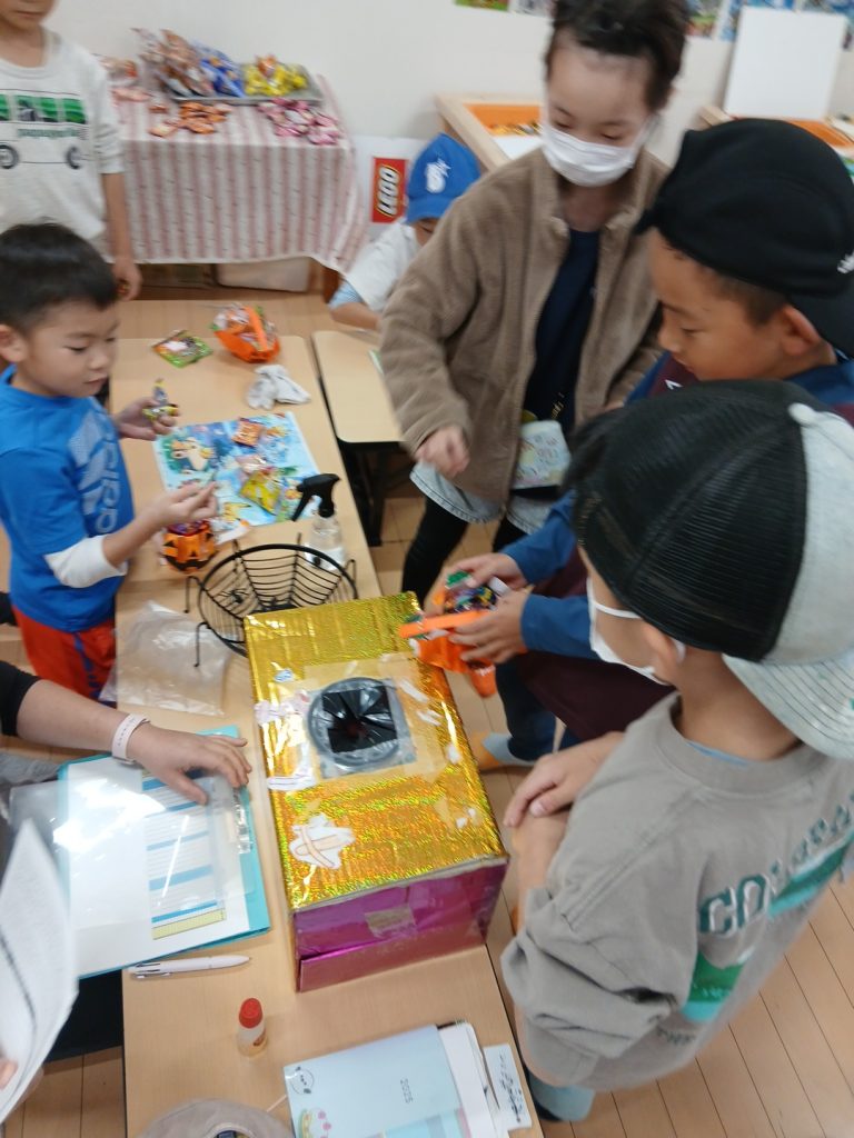 また先日のハロウィンでは学級閉鎖でお菓子の掴み取りが出来なかった人も多くいたため、お休みで出来なかった人は今日代わりに掴み取りを行いました。口の中の色が変わるお菓子を食べ、互いに口の中を見せ合う等盛り上がっていました!