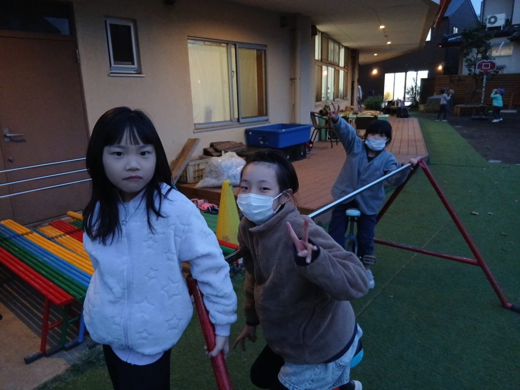 夕方は犬久保公園や園庭・テラスで、野球や鬼ごっこ、ブランコ、一輪車、砂遊び、フリスビードッジ、大縄などをして遊びました。また、お部屋の中では折り紙やトミカ、レゴ、LaQ、段ボールハウス制作などをして過ごしました。
