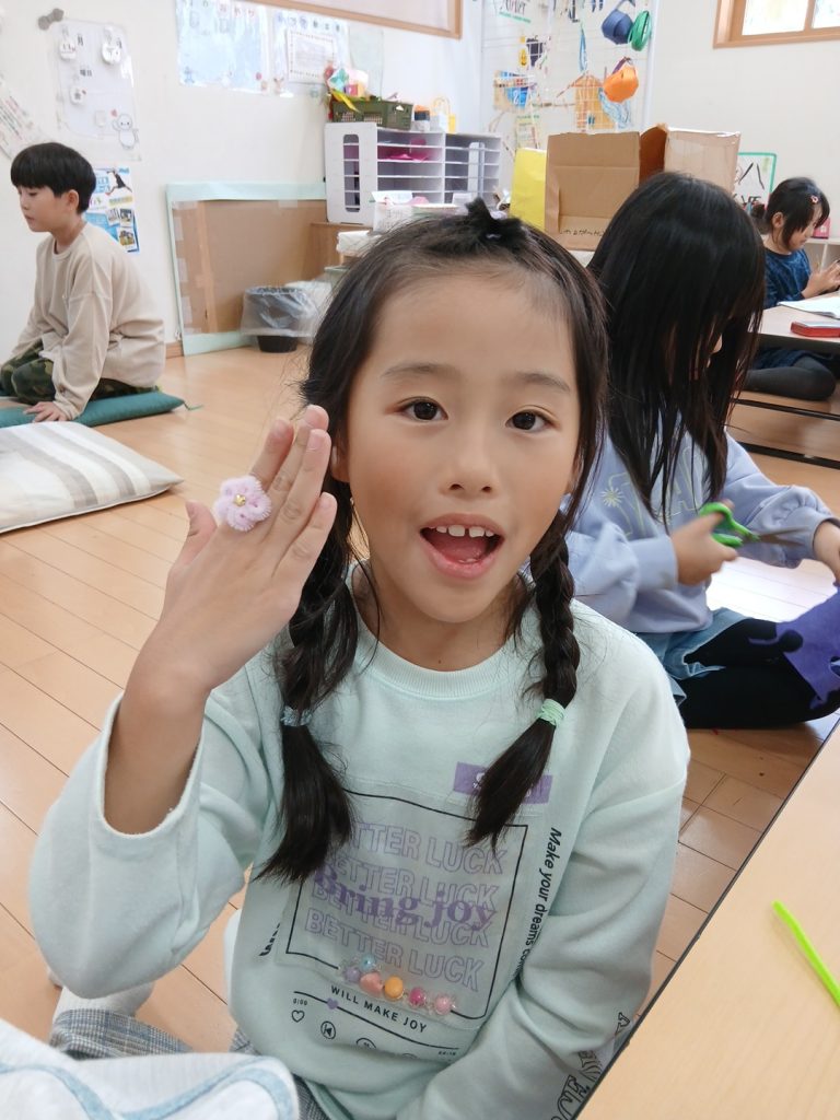 今日の午前中は、雲ひとつない青空が広がっていましたね☺明日は、運動会ですね🎖みなさん、今までの練習の成果を発揮してください♪今日は、4時間授業で帰ってきました!おやつ前に犬久保公園に遊びに行きました☆犬久保公園では、15マス鬼、かくれんぼ、野球、ブランコをしました。おやつは、「ランチパック(トロリッチ生ダブルチョコ)」でした!おやつを食べた後は、犬久保公園、園庭に行きました。園庭では、バスケ、泥遊び、三輪車、ブランコ、ホッピング、はないちもんめ等をしました。お部屋では、ダンス、モールで指輪作り、折り紙、読書、ダンボール工作、LEGO等をして過ごしました。運動会前日なので、早く寝てください💤