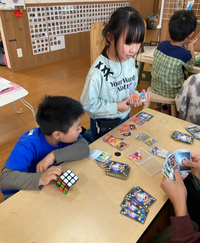今日は夕方もお部屋で遊びました。レゴブロック、ラキュー、ピアノ、工作、カードゲーム等で友達と遊んでいます。